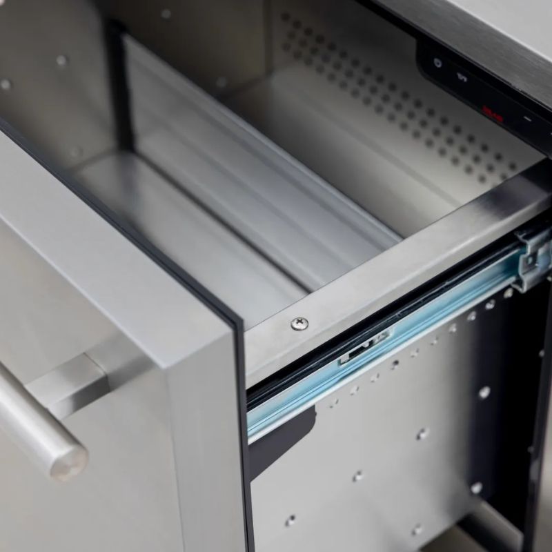 The Blaze 5.1 Outdoor Rated Double Drawer Refrigerator is the ideal space saving solution for outdoor kitchens built into your island. With 5.1 cubic feet of space, this refrigerator has ample room and can hold up to 154 cans!