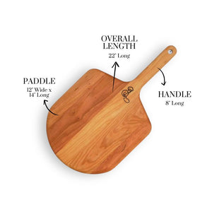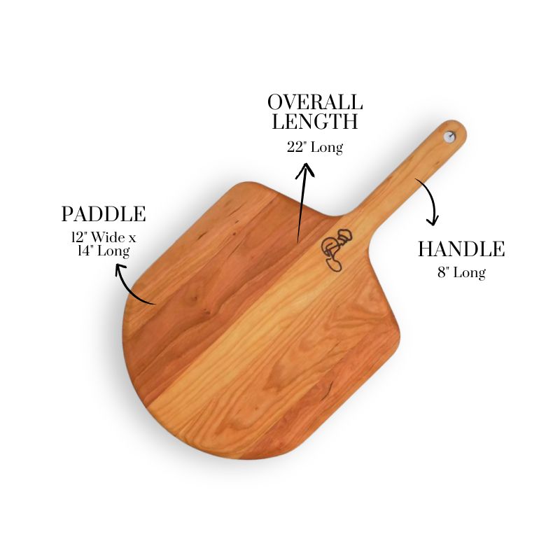 The 12" wide paddle and 14" long surface are ideal for medium to large pizzas, while the 8" handle gives a total length of 22", making it perfect for pizza ovens, wood-fired ovens, and baking stones. The hand-sanded finish and beveled edge paddle allow pizzas to slide smoothly, while the smooth, comfortable handle makes handling effortless.
