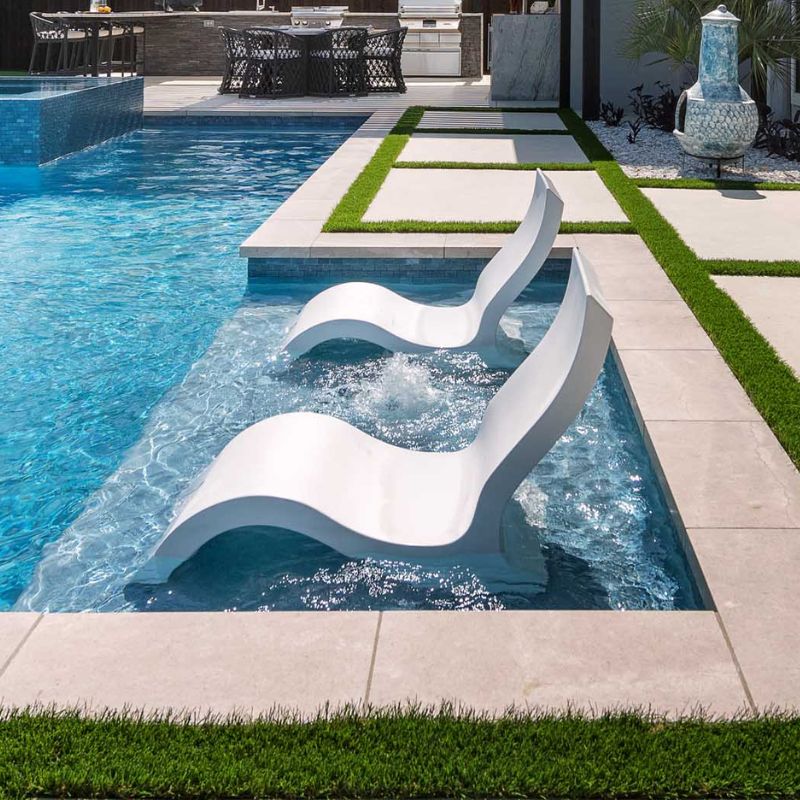 Built to last and made from high-quality materials, Ledge’s signature in-pool furniture, patio sets, and outdoor accessories are crafted to withstand sun, water, and weather. Every piece is designed to help you create a luxurious, low-maintenance retreat that lets you enjoy the best of outdoor living all year round.