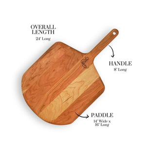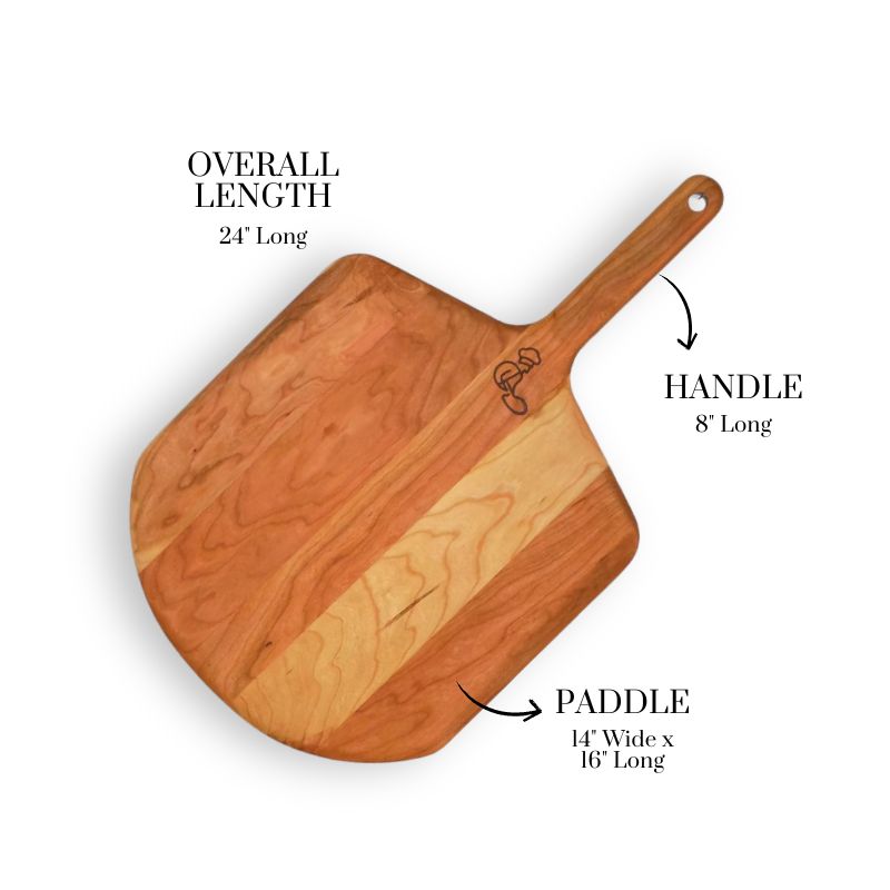 The 14" paddle and 16" long surface are perfect for handling larger pizzas, while the 8" handle gives a total length of 24", making it ideal for wood-fired ovens, pizza ovens, and baking stones. The hand-sanded finish and beveled edge paddle ensure pizzas slide on and off effortlessly, with a smooth, comfortable grip.