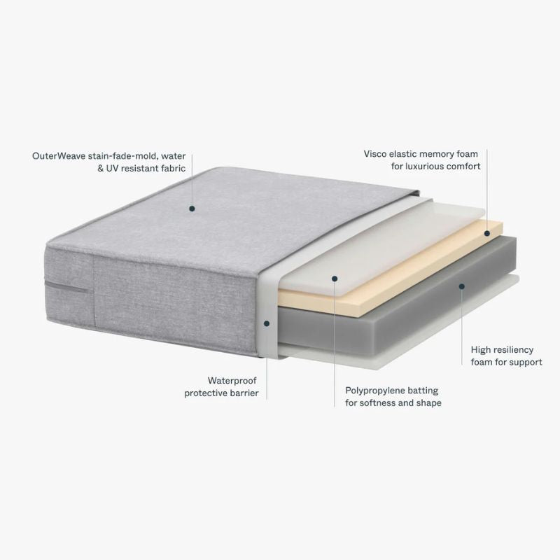 Soft to the touch and engineered for outdoor use, our OuterWeave performance fabric resists water, stains, mold, and fading.