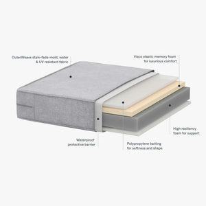 Our triple-layer memory foam OuterCloud cushions provide luxurious comfort, support, and ergonomic fit akin to a luxury mattress.