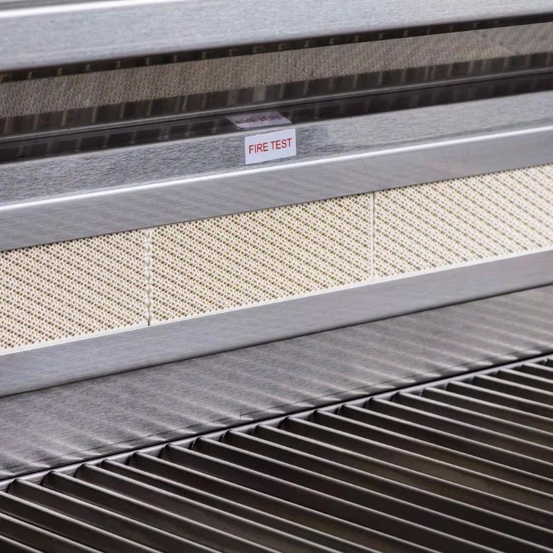 Blaze also introduced an innovative hood assist mechanism, making it easier to open and close the grill for smoother, more efficient cooking sessions. The cast stainless steel burners deliver up to 14,000 BTUs each, while the infrared rear burner provides exceptional searing power for slow-roasted dishes and rotisserie cooking.
