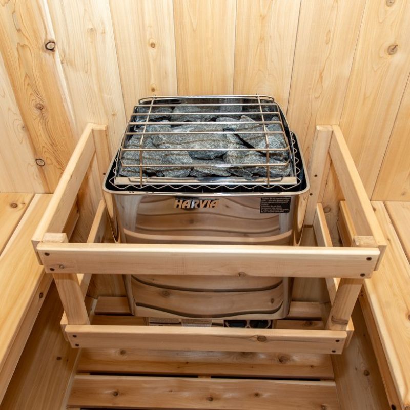 This compact barrel design heats quickly and promotes efficient air circulation for a consistent, comfortable session. Complete with a flat floor, solid cedar benches, and a pre-hung bronze tempered glass door, the Harmony CTC22 arrives as a ready-to-assemble kit for easy setup in any backyard or outdoor space.