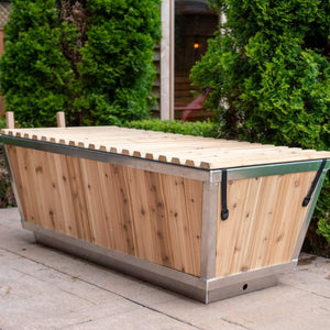 Choose between 304 stainless steel or white High-Density Polyethylene (HDPE) plastic interior, framed by a white cedar exterior that blends durability with natural beauty. Holding 190 gallons (720 liters) of water, its angled sides make entry and exit effortless. With an easy drain for quick water changes and an optional roll-up cover to keep your water pristine, this tub makes cold therapy simple, relaxing, and rewarding.