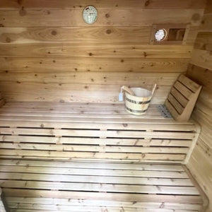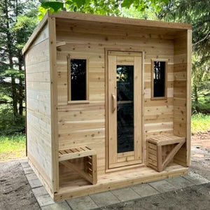 Crafted from premium White Cedar or Red Cedar, this solid cedar outdoor sauna blends classic cabin design with modern outdoor living. The included covered porch functions as a built-in cool down space, making this luxury outdoor sauna ideal for year-round use in any climate.